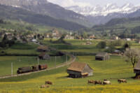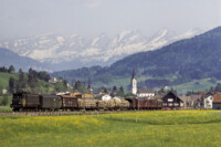 Bedingt durch mein Studium in Konstanz in den Jahren 1988 bis 1992 kam ich mit den Bahnen der angrenzenden Schweiz in Kontakt. Schnell erkundete ich den Rhythmus der von urigen alten grünen E-Loks gezogenen Personen- und Güterzüge, die in jenen Jahren noch häufig in der Ostschweiz unterwegs waren. Es handelte sich um die mit Buchli-Antrieb ausgeführten Baureihen Ae 3/6 und Ae 4/7 der Schweizerischen Bundesbahnen (SBB). Vergleichbare Loks wie die E16 gab es in Deutschland schon lange nicht mehr im Einsatz zu erleben. Eine besondere Faszination übten die großen Speichenräder auf der einen Seite oder der mächtige Buchli-Zahnradantrieb auf der anderen Seite der Loks auf mich aus. So packte ich oftmals die Kamera ein und suchte eine geeignete Fotostelle im lieblichen Thurgau auf, um die grünen E-Lok-Veteranen zu erleben und im Bild festzuhalten…